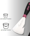 Speilpolert rustfri stålklinge med spesialbuet form og avrundede hjørner – designet for enkelt å hente materiale fra kantene i spann og beholdere. Utstyrt med praktisk krok for oppheng og ergonomisk håndtak i gummi for komfort og kontroll.